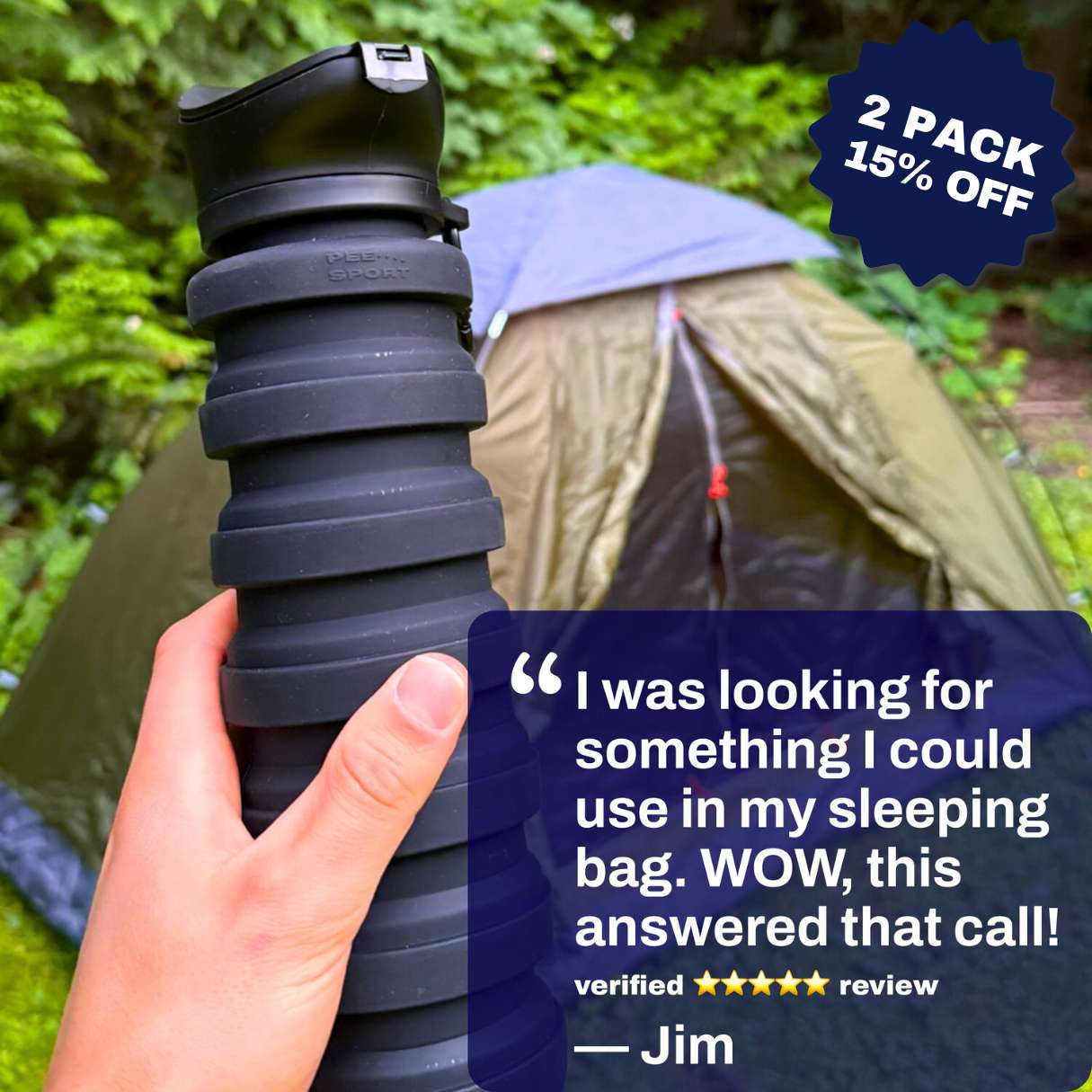 PeeSport is the first performance pee bottle of its kind. Take it anywhere — it collapses. No weird looks — it’s discreet and stylish. Built to last — it's backed by a 1 year durability guarantee.