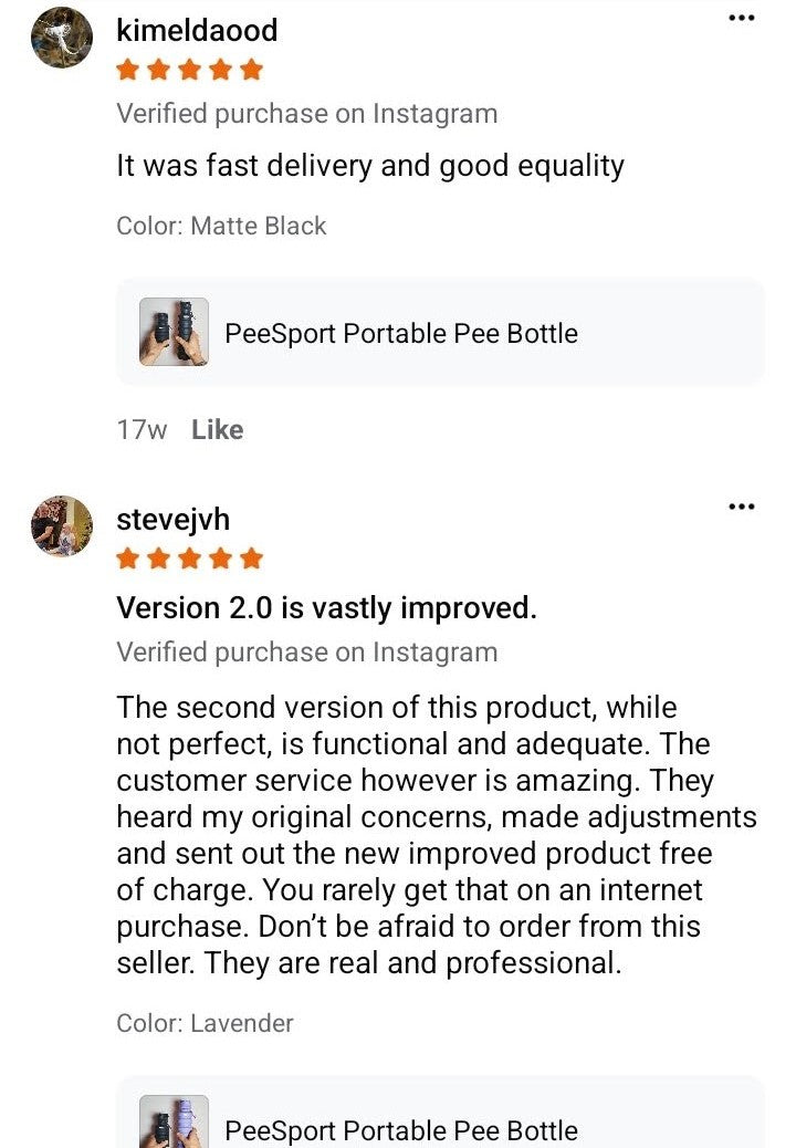 Conquer midnight wake-ups, highway detours, and smells & spills with the #1 male urinal loved by 30,000+ commuters, road-trippers, and campers. But, don't take our word for it 👇🏽