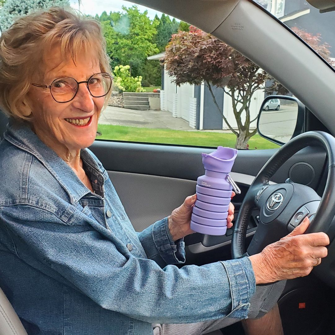 The pee sport bottle is just what I needed. It has a unique design feature that allows the pee bottle to collapse into itself when not in use for an overall smaller package. Just simply grasp the the base with one hand and gently pull the top out with the other hand to extend it to full length. It woks great for long trips in the car or truck and eliminates having to pull over at a gas station.